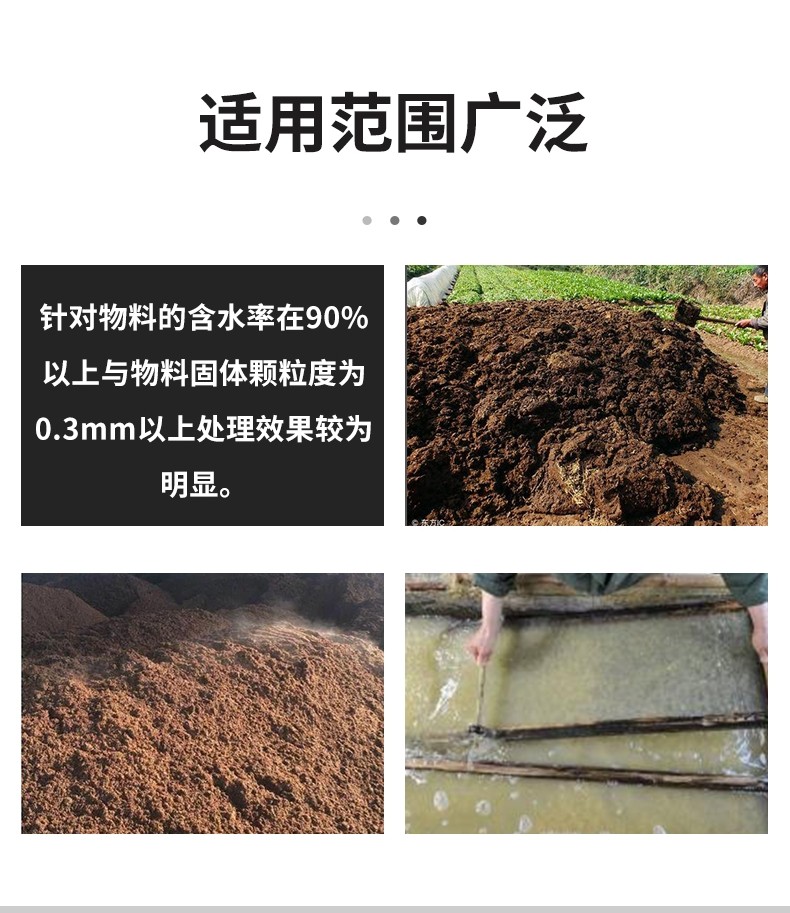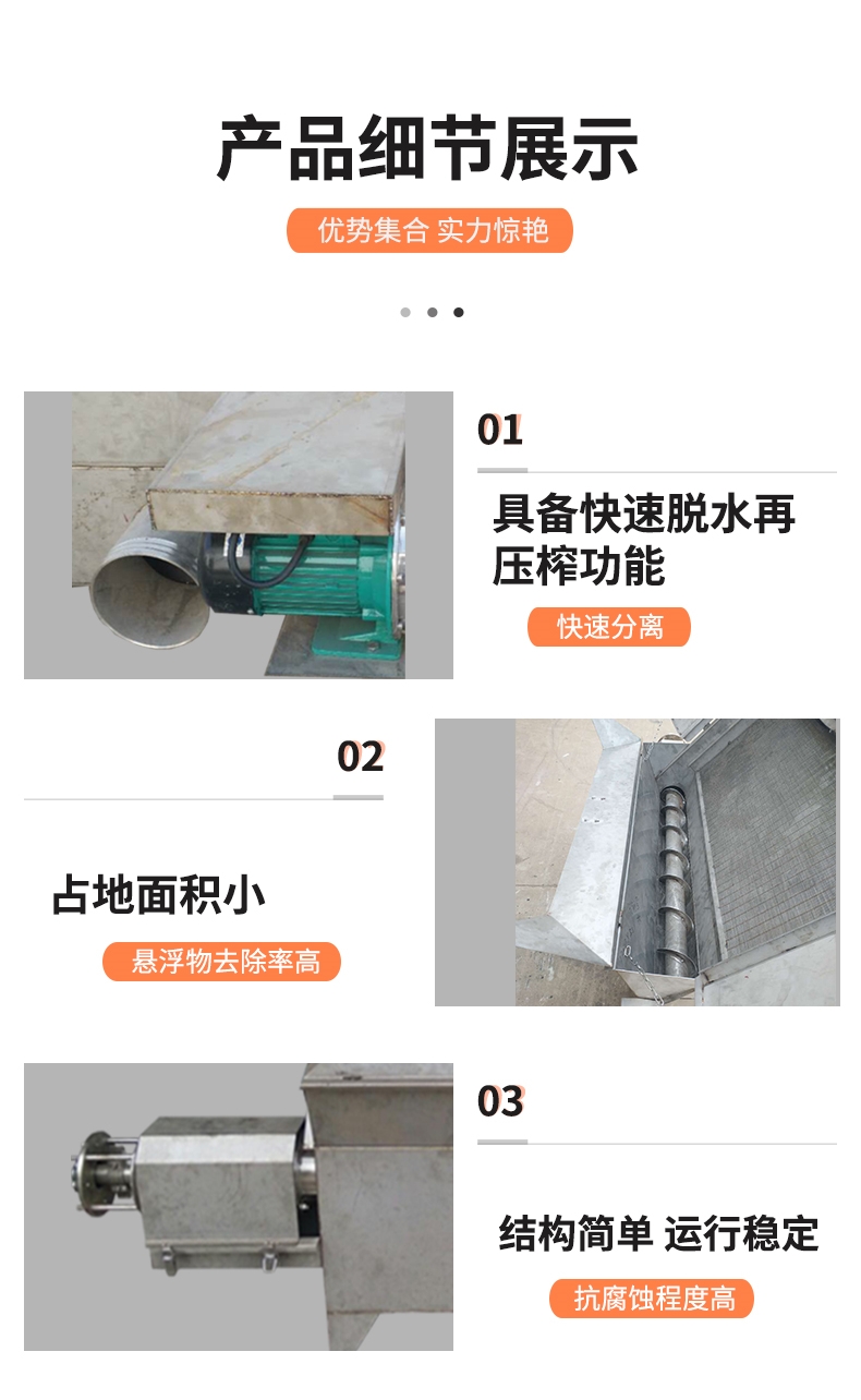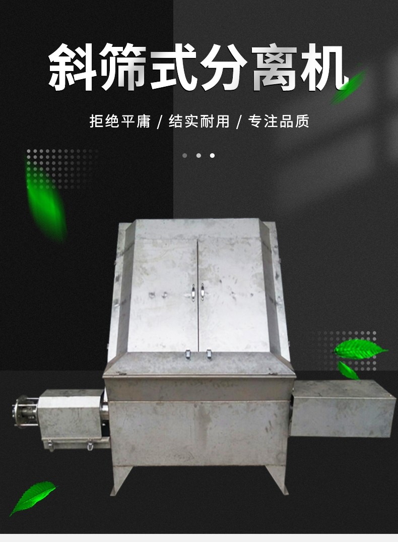 處理量大,固體流失少、斜篩式固液分離機處理后的固體含固率在5%左右,整機操作簡單方便,占地面積小的特點。適應性強,對原料水份要求不高。
